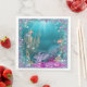 Under the sea napkins with beautiful pink and teal blue under the sea background. These beautiful under the sea nautical ocean paper napkins can be customised with text.