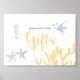 Ocean themed gender neutral baby shower gifts sign.