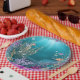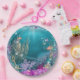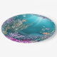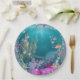 Under the sea paper plates with beautiful pink and teal blue under the sea background. You can add text to personalise these elegant under the sea ocean paper plates.