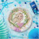 These under the sea Mermaid plates feature a mermaid with blonde hair sitting inside an ornate frame with seaweed growing around it. Colours include: Green, aqua, turquoise, beige, purple, pink and light blue. You can personalise with your initial. Perfect for an Under the Sea theme or a Mermaid theme!