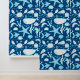 Under the sea blue and white starfish, whale, crab, fish pattern.