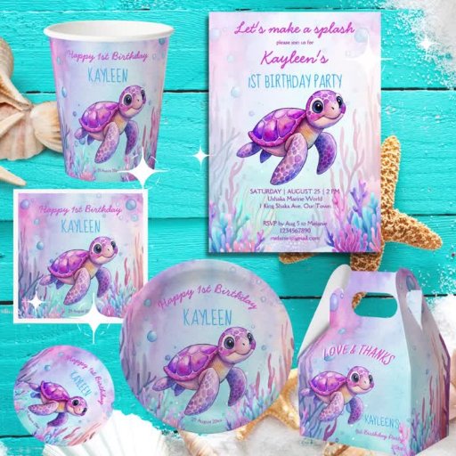 Sea turtle cute pink turtle girl birthday suppliesDesigned by Ieva Jenciute
