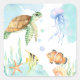 Under the Sea Turtle, Jellyfish & Fish Ocean Party Square Sticker