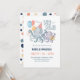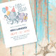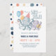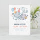 Under the Sea theme baby shower invitation features a cute octopus mum and baby with balloons, festive hat and present. Perfect for nautical, coastal and beach themed baby showers. The summer colours of beach blue, coral, navy, purple and sunny yellow are great for a girl or boy. Reverse side is a coordinating polka dot pattern. Shown here as a couple's shower invitation but can easily be personalised with the mum-to-be's first and last name instead. Art by KL Stock
