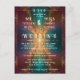 The centrepiece of the invitation features a dazzling starburst, radiating from the centre in a harmonious blend of sparkling blue and golden yellow hues. The vibrant design captures the brilliance of the stars, with shimmering blue rays stretching outward, merging softly with luminous golden yellow accents. Each beam of light tapers elegantly as it extends, creating an ethereal glow that dances across the page. Delicate, twinkling details are sprinkled throughout, like tiny stars or diamond-like points of light, enhancing the radiant and festive atmosphere of the invitation. The overall effect is both mesmerizing and elegant, giving the invitation a celestial and celebratory feel.