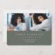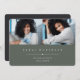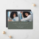Simple and modern graduation photo announcement features two photos aligned side by side, with the graduate's name, school, and class year beneath in white lettering on a dark sage green background. Your graduate's name and school appear beneath. Add a personal message to the back, along with an additional photo.