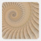 Stickers with "Undertow" by Susan Wallace. Copyright © 2008, Susan Wallace. A sweeping spiral textured with a mirroring spiral pattern, suggesting seashells caught up in a wave; in golden sand with grey highlights.