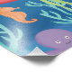 Underwater world with submarine, orange seahorse, starfish, octopus, jellyfish, fish and aquatic plants