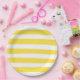 Uneven Stripes - Lemon Yellow and White Paper Plate