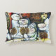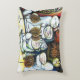 The cushion is small to medium sized. It can be washed. It is well constructed. The material used is pleasant and feels decent quality. It has a very slight plush feel which is good. It is well labelled and its care clearly stated. Theres nothing not to like about it. All in all a good item. The deduction of one star overall is due to long delays in delivery to the UK. It's not clear if this was due to Zazzle or somewhere else in the chain as I did not receive status updates of dispatch or progress. I cannot comment anymore on that other than to say that was our experience but it may not be the same for you. The printing was surprisingly close to what we were expecting. Its an art piece and on material so its hard to assess the precision of printing but it seems close to the original. The soft lines are reproductions of the original. The colour is a fair reflection of the painting. This was printed in the US and it looks like US quality. No issues.