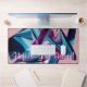 This stylish desk mat is a great motivation and encouragement positive affirmation. Perfect as a desk mat, oversize mouse pad, and great for writing, typing, or crafting. This beautiful motivating and inspiring desk mat will brighten up any home office or work area. It also has an anti-slip backing to reduce slipping or sliding on most surfaces. The design features a unique colourful modern liquified abstract art, painted with deep purple, violet, sky blue and black pastel colours, on an antique pink background. This stunning design created with an artistic colour flow fused with liquified marble effect, printed on a durable 3mm thick neoprene material desk mat. The design features a customizeable motivational and inspirational quote “Unfold Your Beauty!” that can be changed and fully personalised to your needs. A truly positive thinking and uplifting daily affirmation. This unique desk mat is a great typography inspiring quote art gift idea, enhancing any home office and work space with its inspiring and encouraging optimism ambiance. This positive thinking and feel good vibes desk mat is part of the