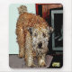 This image features my own soft coated wheaten terrier, Waverly ("Waves"), who has just had a shampoo and is about to be groomed. While I get my comb, Waverly is on the edge of the grooming table, considering jumping down and running away. ;-) This normally happy free spirit would much rather frolic in the rain and jump in puddles than get combed out! Original Soft Coated Wheaten Terrier digital portrait "Unhappy Camper" M.Light
