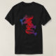 I give wanted to give this a 4 instead of a 5 because these Basic DARK T0shirts run unexpectedly SLIM or Narrow. Which is great if you do not have a potbelly, but I have a paunch. It isn't the shirt's fault that I've got a beer belly. The design and shirt itself is a quality cotton shirt. The color is more of a deep purple, but still a very pretty color. The Basic DARK T-shirts run a bit SLIMMER than the Basic Ts. The neck is a fraction narrower (or seems to be narrower) also. I'm a paunchy middle-aged woman and my neck is 12 inches (31cm) thick and the neckline fell about the same as in the photo of the man, and I had the desire to tug it a bit. So if you're a thick necked man or like loose shirts, be aware these are slimmer shirts. Once I get rid of my lockdown paunch it'll look great. The shirt washed well in cold water with no apparent bleeding. We don't have a dryer, so it hung dry. Did not shrink. Love the colors and the design. The design looks smaller on my shirt than it does on the model on-line. But still, it looks good on the shirt. The printing looks as it does on the model, just the size seems fractionally smaller. Washed garment in cold water, hung dry and design appeared unaffected.