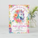 Unicorn 2nd Birthday Floral Rainbow and Stars Invitation