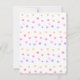 Unicorn 7th Birthday party invitation card. Multicolored balloons and unicorn head decorated with beautiful pink flowers on white background. Multicolored confetti on the back side. Text is ready to be personalised.