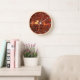 UNICORN AND DEER,FLOWERS,FOREST ANIMALS Red Floral Clock
