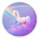 White unicorn, rainbow and purple sky with pink clouds.
