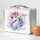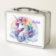 Beautiful unicorn personalised lunch box, same image on front and back, edit the name yourself when you order.