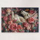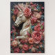 Jigsaw puzzle featuring a fabulous romantic fantasy illustration of a unicorn with roses. This jigsaw would make a wonderful gift for any puzzle lover who likes unicorns or embroidery.