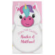 Cute unicorn baby shower design with a stuffed animal unicorn cartoon! The pink background and hair accents make it great for a baby girl on the way!
