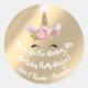 Unicorn Birthday Favour Pink Sparkly Gold Floral Classic Round Sticker
