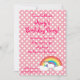 Birthday invitation with unicorn and rainbow pink polka dots pattern