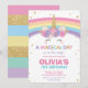Rainbow Unicorn Birthday Party Invitation, featuring a cute unicorn and a pretty rainbow. Personalise this vibrant Rainbow Unicorn Birthday Invitation with your party details easily and quickly, simply press the customise it button to further re-arrange and format the style and placement of the text. Great for ANY AGE! Exclusive design (c) The Happy Cat Studio. Matching items available in store!