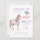 This charming design features a beautiful unicorn with soft pastel colors and dreamy details, creating the perfect look for a unicorn themed birthday party or rainbow celebration. The clean layout keeps the focus on the artwork while still feeling fun, girly, and magical.