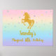 Unicorn party photo backdrop with cute hawaiian icons, personalised with the greetings, your child's name & age,