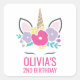 Unicorn Birthday party favour stickers with bright rainbow floral unicorn face and gold glitter