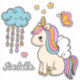 Unicorn Cute Whimsical Girly Personalised Name Stickers Labels features a cute unicorn with stars, heart, butterfly and whimsical cloud with your personalised name. Perfect for water bottles, best friends, birthday party gifts and favours. Personalise by editing the text in the text box provided. Designed by ©Evco Studio www.zazzle.com/store/evcostudio