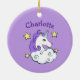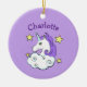 Unicorn Design Ceramic Ornament with customisable text and background colour.