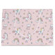 Cute hand drawn pastel unicorns with rainbow tails, surrounded by hearts, stars, and clouds with rainbows.