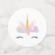 Table confetti with a pastel unicorn face theme with polka dots. Each unicorn face has a gold tone (non-foil) horn.