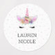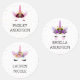 Three different unicorn faces with the option to have 3 different names (or use one name on all 3 designs).