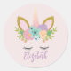 Unicorn Face With Eyelashes Personalised Name Classic Round Sticker