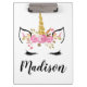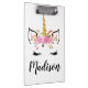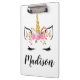 Unicorn Face With Eyelashes Personalised Name Clipboard