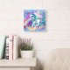 Unicorn fairy winter glitter rainbow ice square wall clock