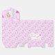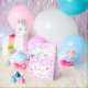 The design features a soft pink background with elegant white unicorn heads that have pastel pink, blue, and yellow flowing manes. The unicorns have golden horns and expressive eyes, adding a dreamy touch. Surrounding elements include fluffy pink-outlined clouds and glossy pink hearts. The seamless pattern creates a magical, fantasy-inspired aesthetic.