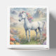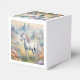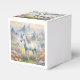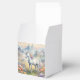 A favour box showing a dreamy image of a white unicorn with a rainbow mane standing in a field of flowers. In the background are majestic mountains. The perfect gift to give those who love magical and mystical unicorns. Contains generative content.