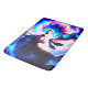 This bath mat has a unicorn fighting a warewolf pictured on it.