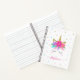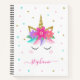 This personalised unicorn notebook features a modern unicorn face design with flowers, stars and faux gold glitter. Personalise it with your own text.