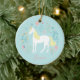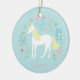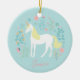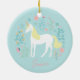 Unicorn Flowers Pink Aqua Personalised Ceramic Tree Decoration