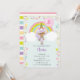 This sweet and pretty unicorn girl with dark skin, purple hair and a unicorn headband with roses and a daisy and gold glitter look horn holding a birthday balloon is the perfect way to celebrate a magical and special day. This unicorn birthday invitation can be customised with the age of the birthday girl on the pink balloon. A polka dot rainbow and confetti stars complete this happy and fun look. The back has pink, lime green, blue, purple and yellow stripes with a polka dot pattern Artwork © Chrissy H. Studios, LLC. All rights reserved.