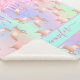 A trendy rainbow coloured background with unicorn and rainbow pastel colours in pink, purple, rose gold, mint green. Decorated with faux glitter drips in rose gold, pink and purple and a golden unicorn pattern. Personalise and add a name, written with a modern hand lettered style script with swashes. A mint green band and pink coloured letters. To keep the swashes only delete the sample name, leave the spaces or emoji's in front and after the name.