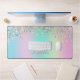 Unicorn Holographic Glitter Desk Mat - A trendy sparkling coloured Desk Mat with mixed turquoise, pink and mauve and light yellow glitter. You can personalise this Desk Mat by adding your name and initials.