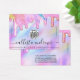 This girly and glamourous bracelet business logo display card is the perfect way to stylise your packaging and add your own personal flair and personality. It features faux printed sparkly unicorn rainbow colour thick glitter drips on top of a holographic iridescent background. The typography is an elegant cursive script with a modern serif font to match. The colour scheme includes pink, peach, blue, purple, yellow, and coral. It's chic, pretty, unique, and luxurious; the perfect way to advertise your business and stylise your marketing and advertisement material for your customers. (bracelet cut lines are printed markers only, cutting must be completed by the customer with an Exacto knife)