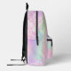 A holographic, unicorn and rainbow coloured background in pink, purple and mint green. Decorated with confetti and a cute unicorn. Personalise and add your first name, monogram initials and full name.