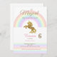 These unicorn invitations have a rainbow and golden unicorn on it. They say "A Magical day is on the way!"