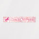 Name labels featuring a pink unicorn and your name on a light pink, soft-focused background with glistening light bokeh.